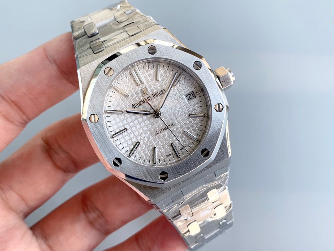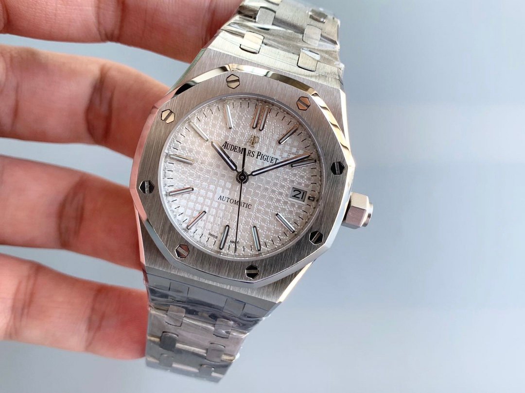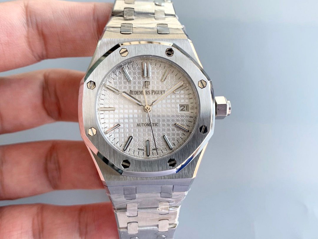 Royal Oak 37mm 15450 SS APSF 1:1 Best Edition White Textured Dial on SS Bracelet A3120