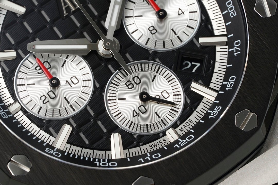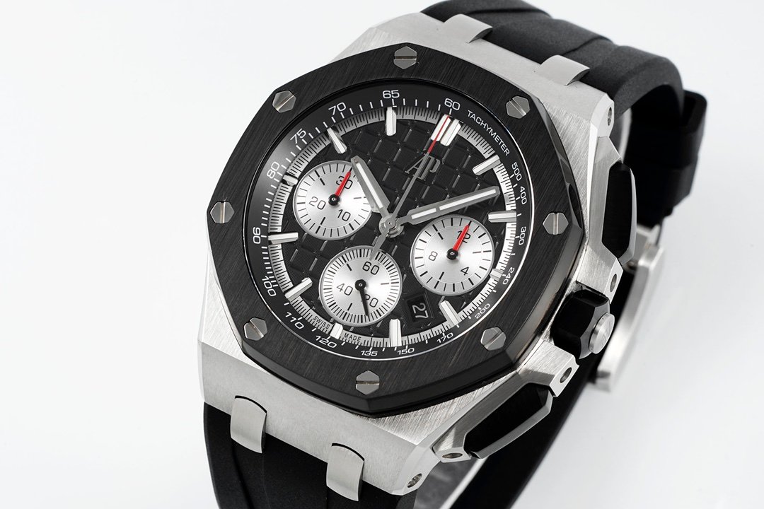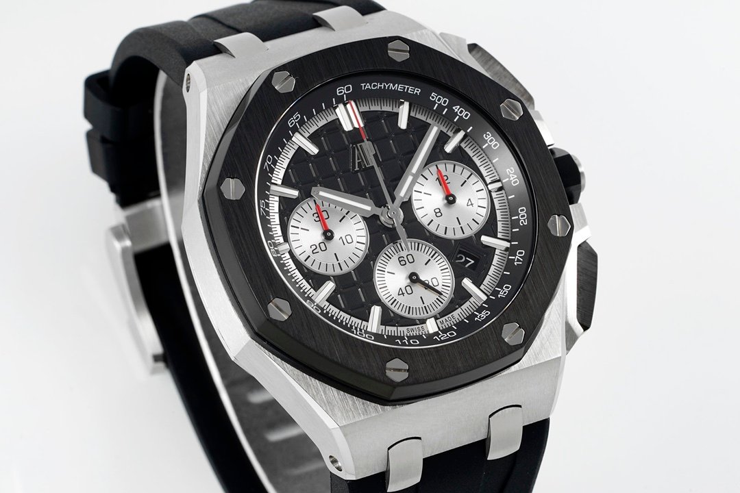 Royal Oak Offshore 26420 44mm SS Black Ceramic Bezel APF 1:1 Best Edition Black/Silver Dial on Black Rubber Strap A4401