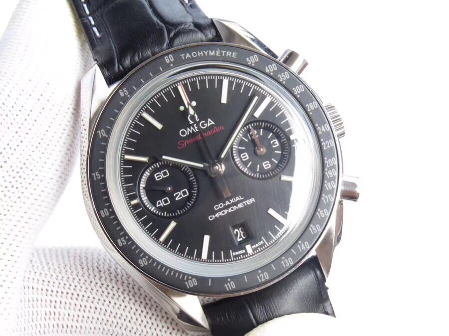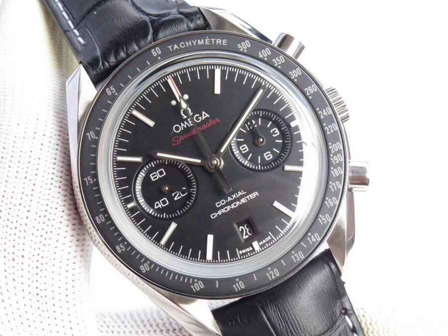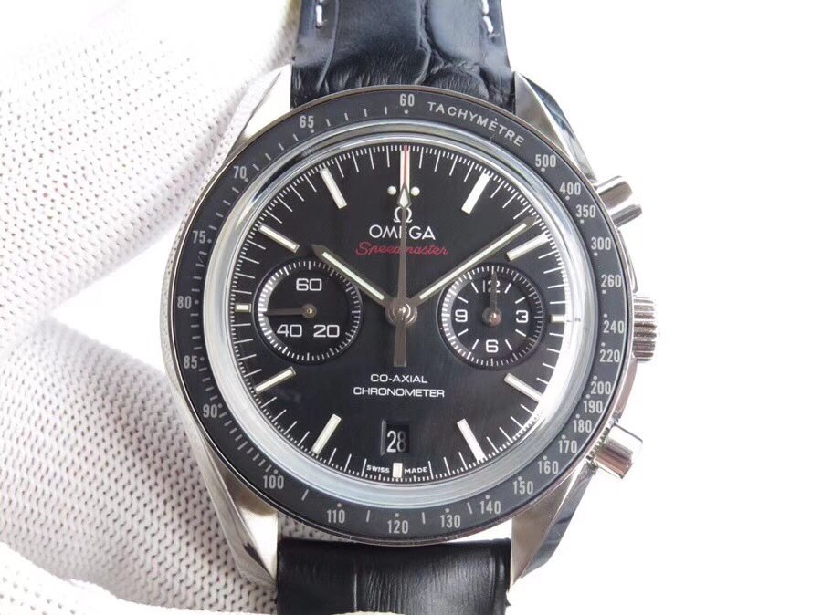 Speedmaster Moonwatch OMF 1:1 Best Edition Black Dial on Black Leather Strap A9900