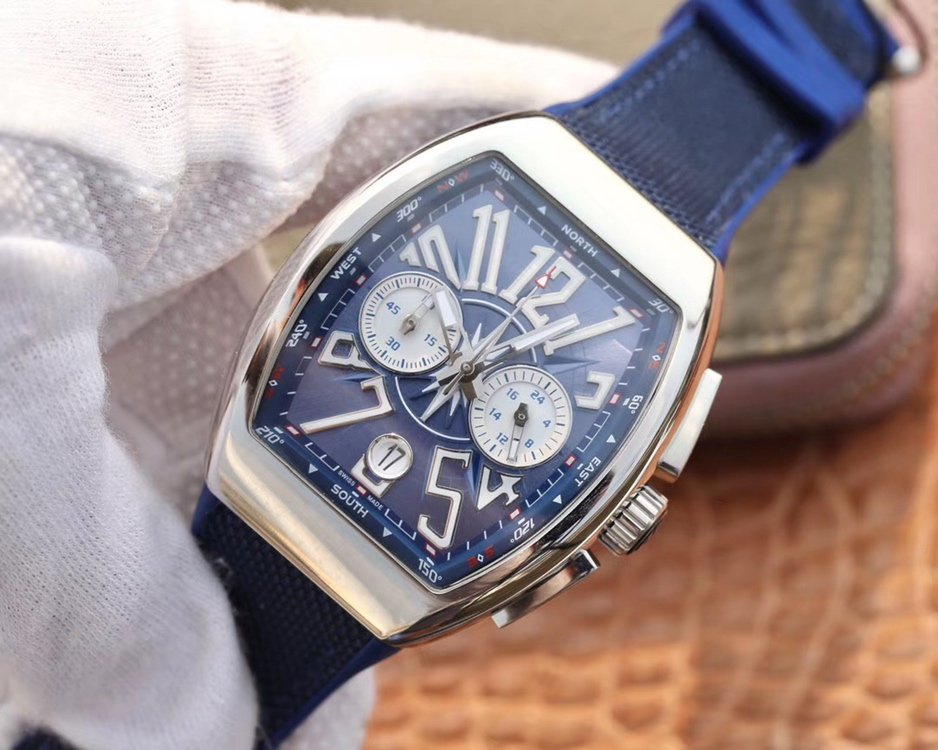 Vanguard Chrono SS ABF 1:1 Best Edition Blue Textured Dial on Blue Nylon Strap A7750